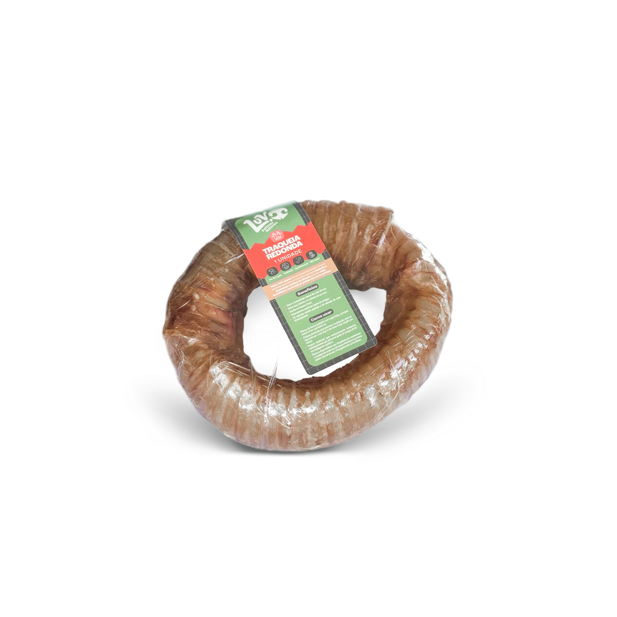 É um mastigável feito com uma unidade inteira de traqueia bovina, seu formato redondo dificulta o rói, rói porque o cão não tem uma base favorável de posição de mordida sendo mais eficiente na limpeza dos caninos.